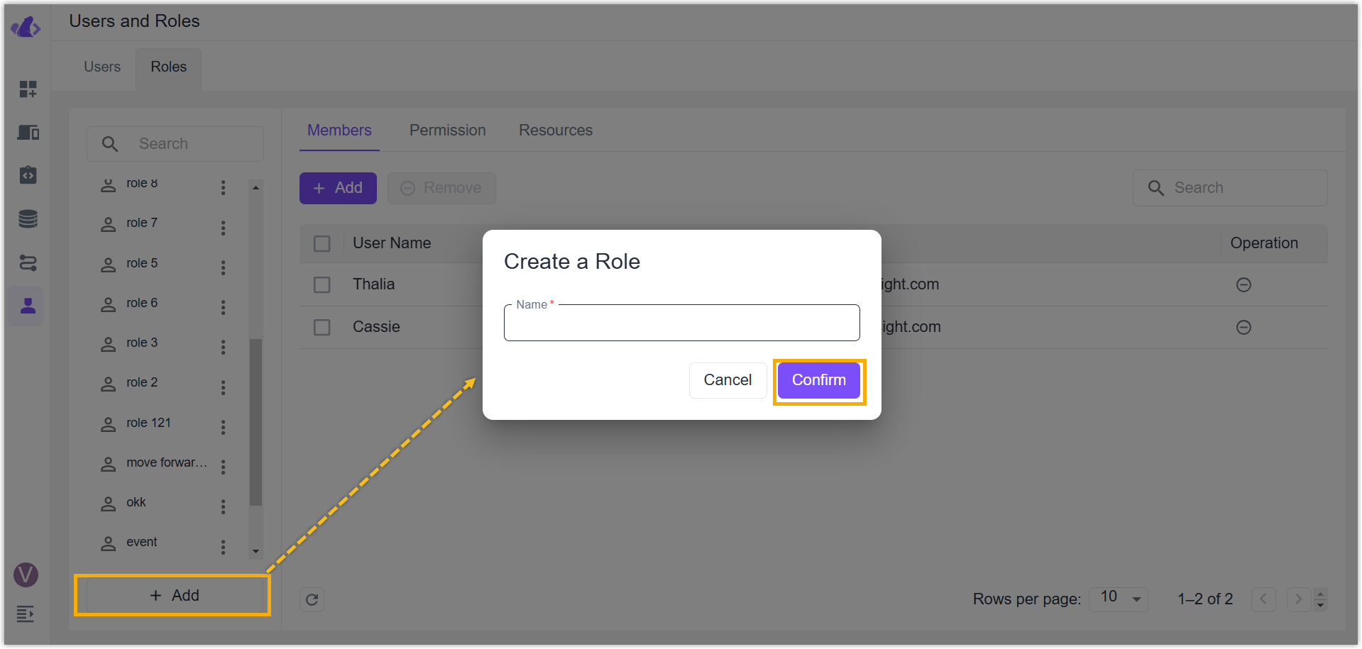 - Customize a role name, click Confirm to save the setting.
