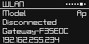 - WLAN Status page: Displays the work mode, connection status, SSID,