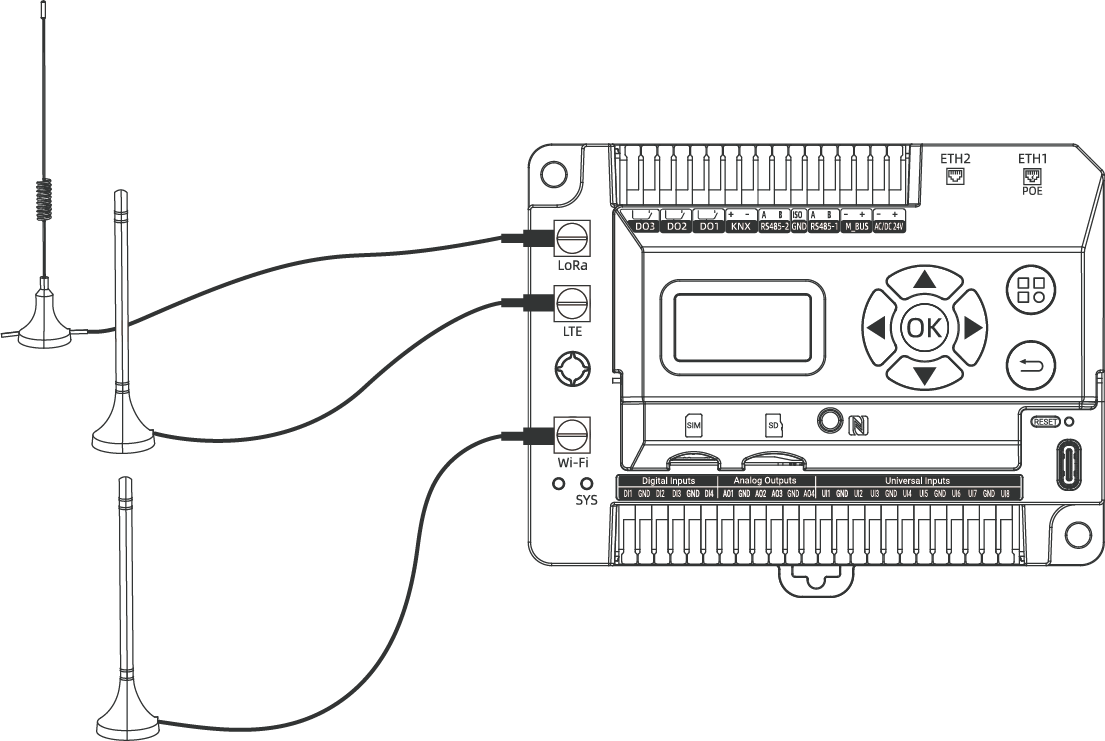 This section describes how to install the antennas to the device.