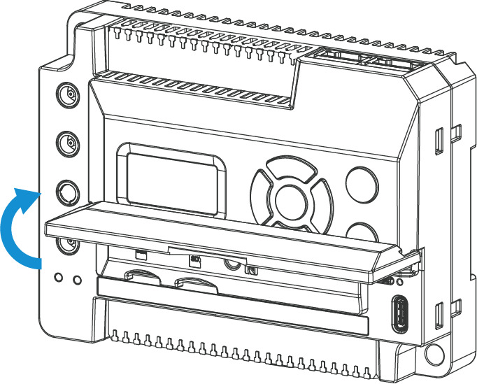 - Open the front cover of the device.