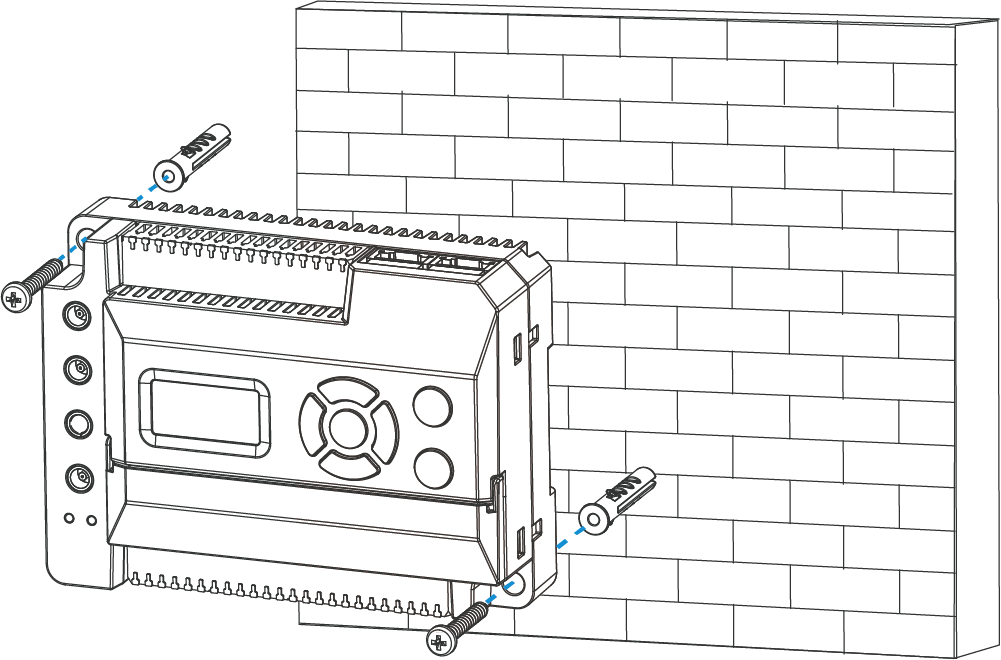 - Secure the device to the wall plugs using the wall mounting