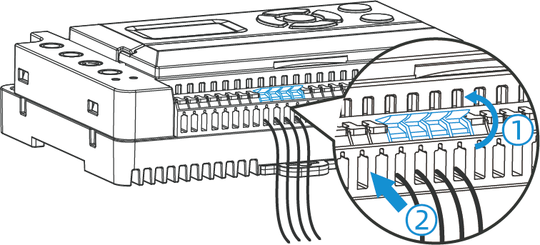 - Push the stripped wires fully into the terminal openings.CAUTION: Ensure the terminal device is connected to the correct interface; otherwise, it may damage the connected device or the gateway!