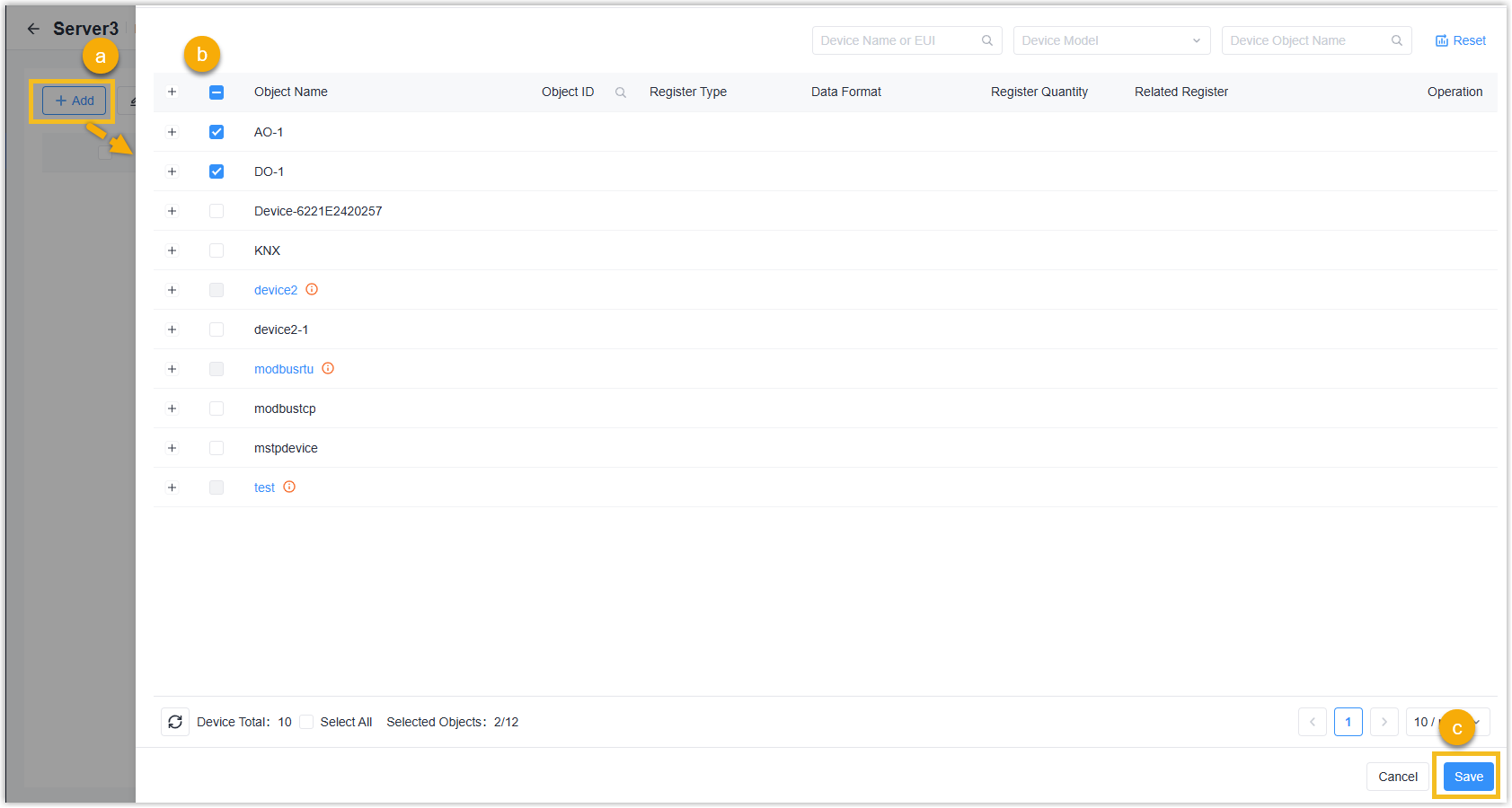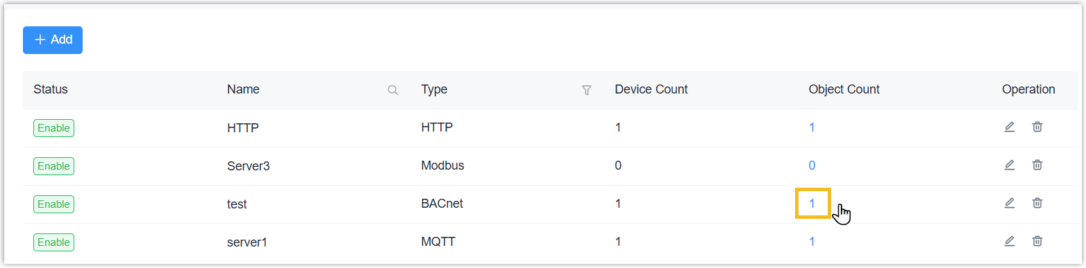 After adding the device objects, the object data supports forwarding to HTTP/MQTT servers or being read by Modbus/BACnet clients.