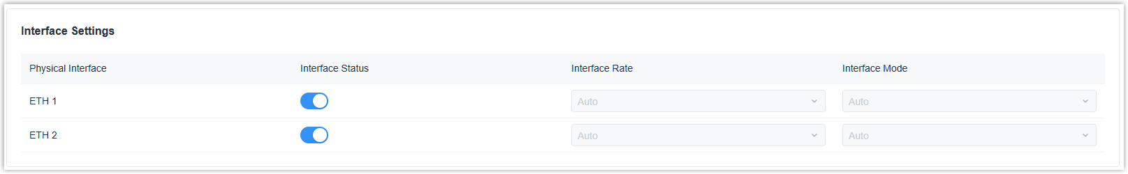 Both Ethernet ports share the same configuration and support 2 connection types: