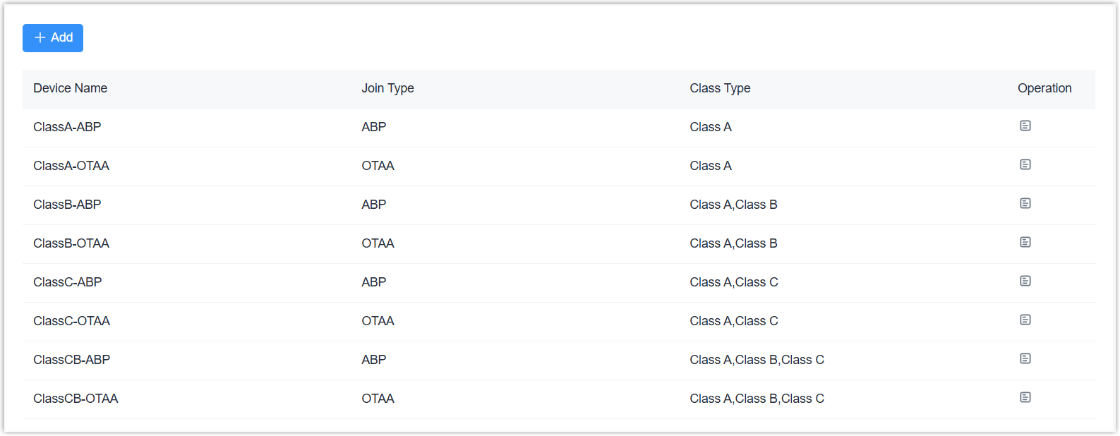 Device profiles define the capabilities of LoRaWAN® end devices and network joining parameters. The gateway provides eight types of profiles for most devices. If these profiles are not compatible with your devices, refer to this chapter to add and manage custom device profiles.