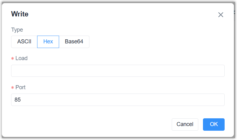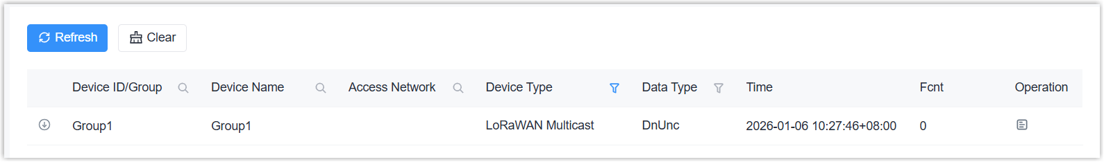 Parameter Description Type Select the downlink payload type. Load Define the downlink payload based on the corresponding type. Port Define the application port for the end devices. - Click OK to send the downlink payload.