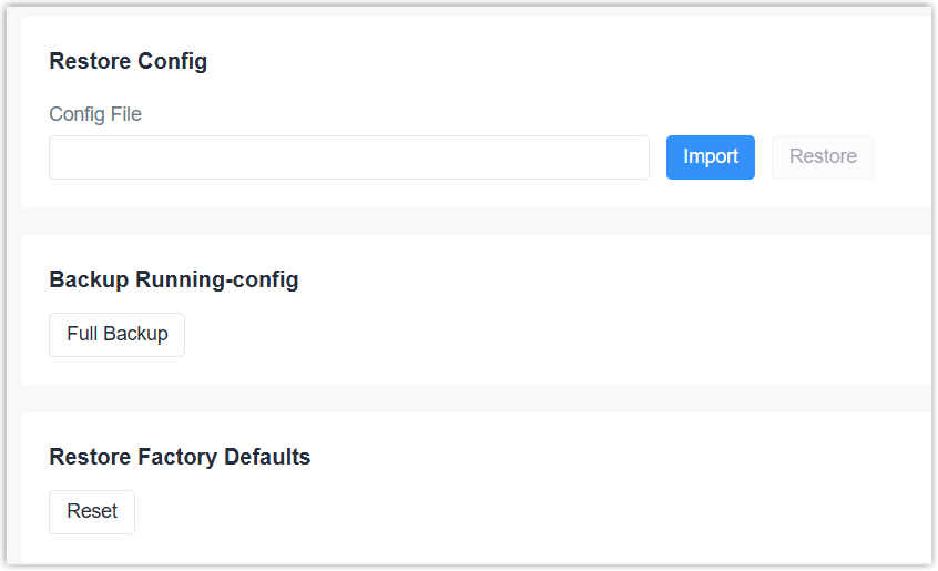 - Click Full Backup to download the configuration file of current device.
