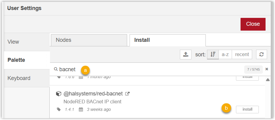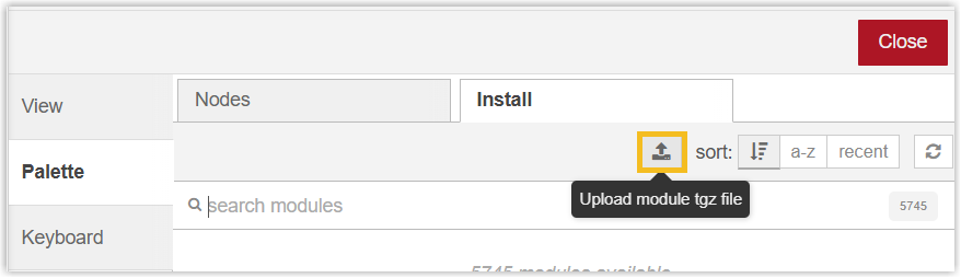 Note: If the device cannot connect to the Internet, please search and download the node-red module package from Node-RED official library, then upload the file to the device.