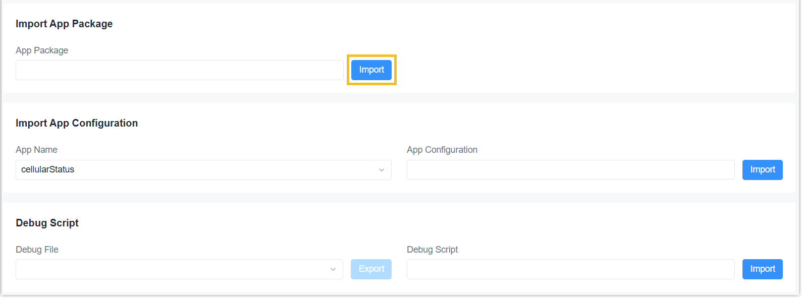 - Click Import to select the App file from local path and import the