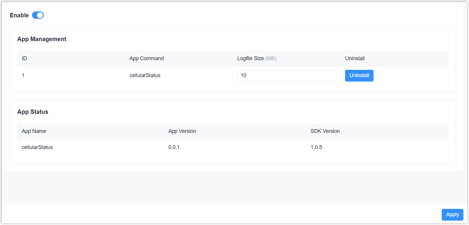- Enable App Management feature, then click Apply to save the