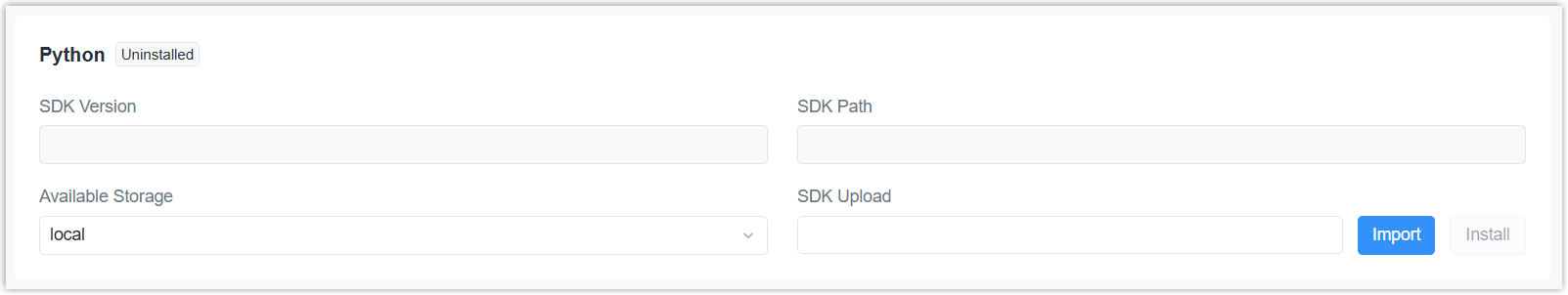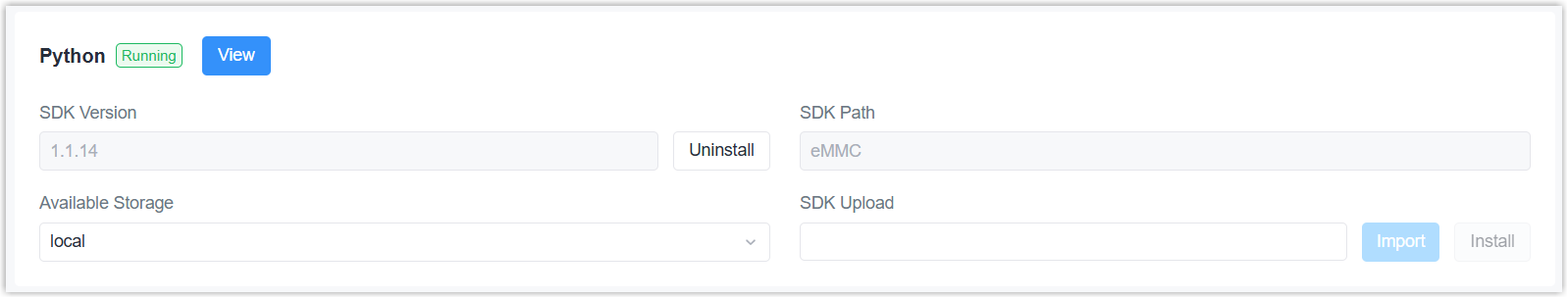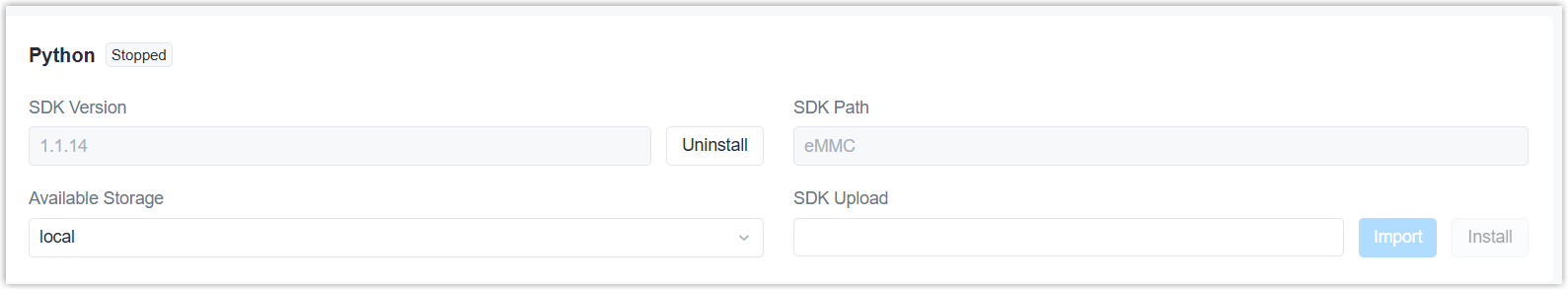 - Click Import to select the Python SDK file from local path.