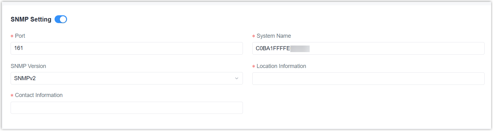 | SNMP Setting | Enable or disable the device to work as an SNMP agent. |