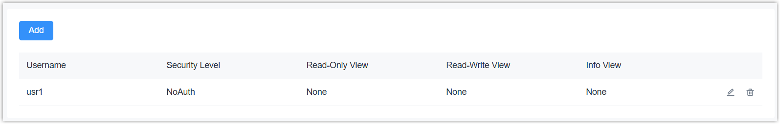 | Add | Add a SNMPv3 user. |