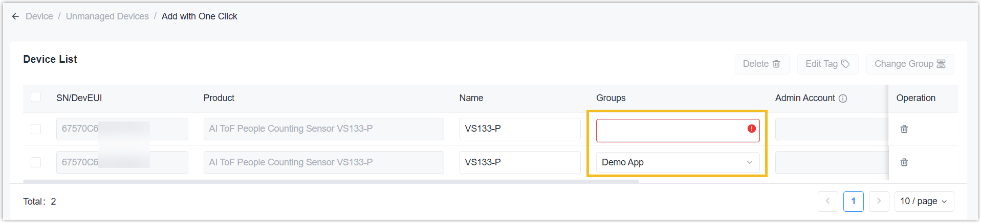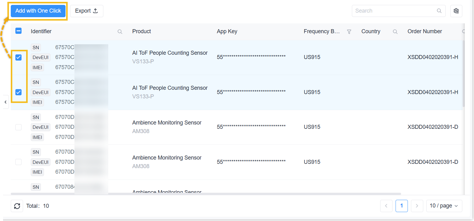 - Select the desired devices, click Add with One Click.