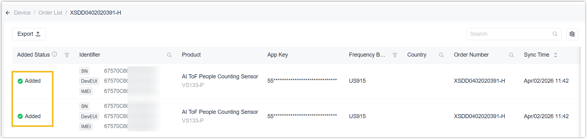 Add Devices from Order