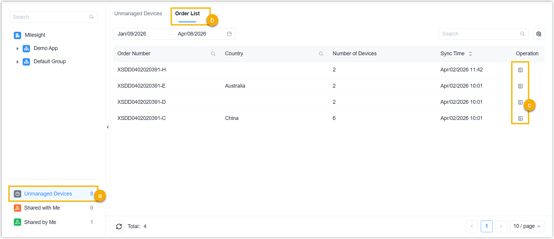Milesight Development Platform provides the service to bind your order for easy device addition. This topic describes how to add devices to Milesight Development Platform from order.