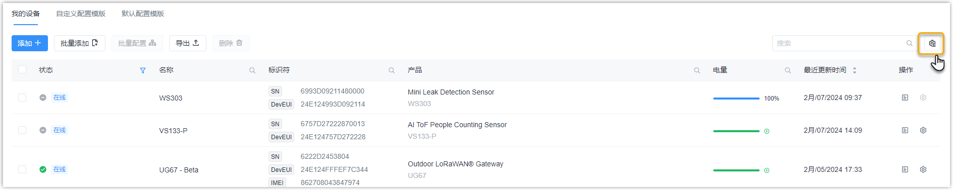 我的设备 栏。