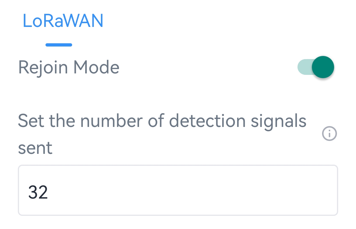 - In the LoRaWAN page, enable Rejoin Mode and set the number of