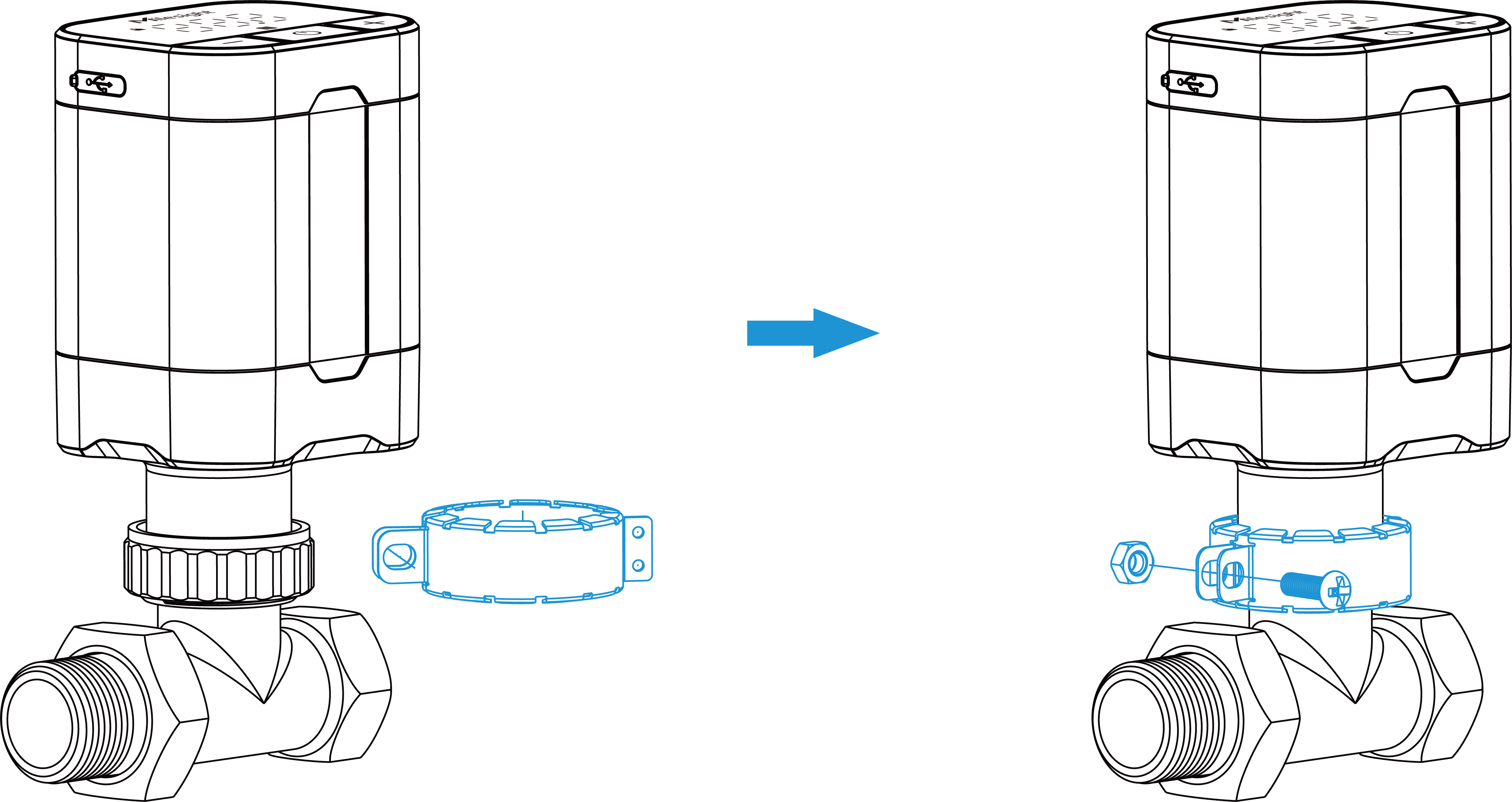 The device supports installing onto a valve with a thread size of M30 × 1.5 mm. For other valve types, it requires mounting metal valve adapters on the valve first.