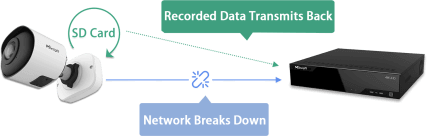 ANR can store video data on the camera storage card when network between IPC and NVR is disconnected and retransfer the recorded video to NVR after network recovers.