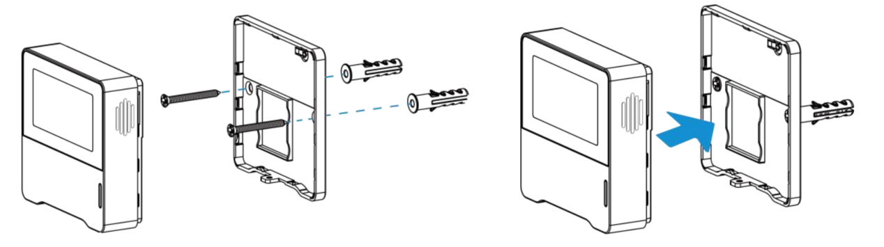 1. Remove the rear cover of the device, screw the wall plugs into the wall and fix the rear cover with screws on it, then install back the device.