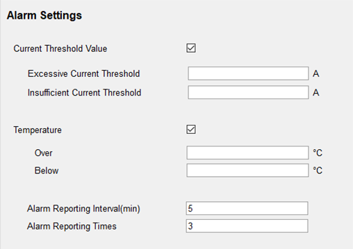 | Reporting Interval | The interval of reporting current data. Default: 10 mins, Range: 1 - 1440 mins Note: