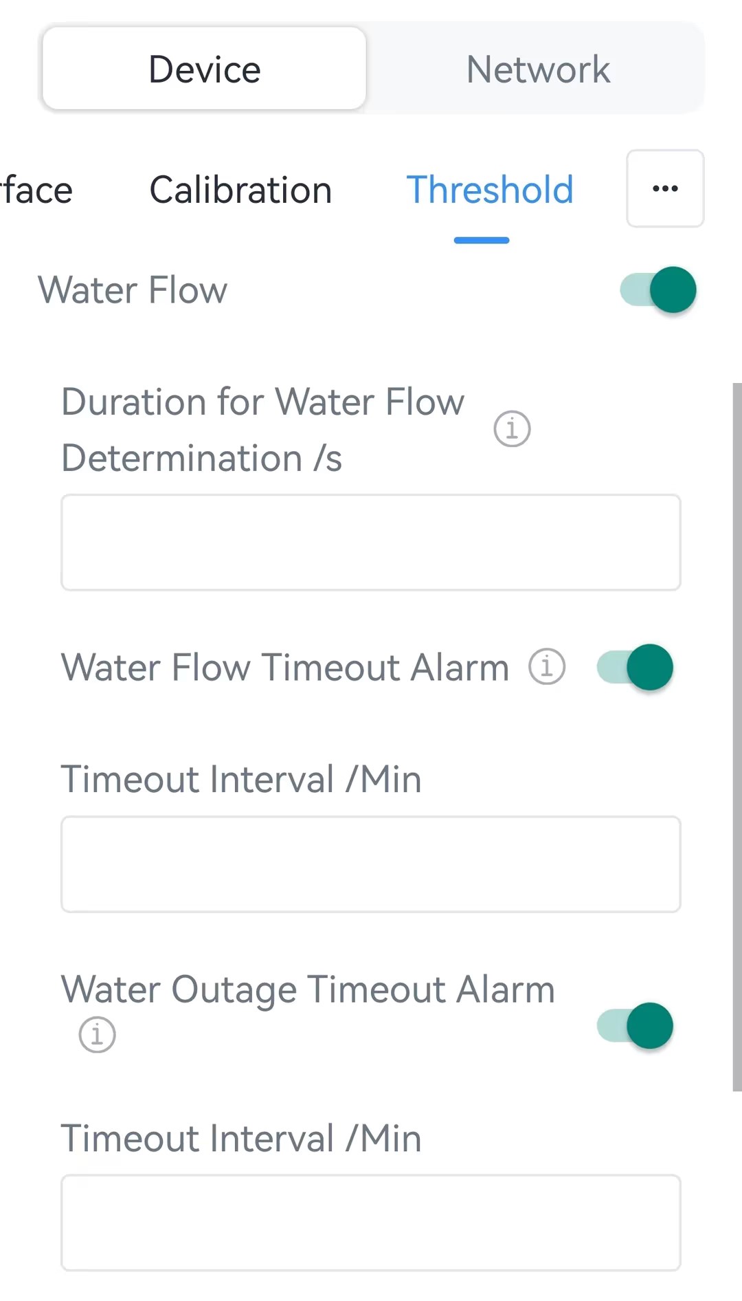 When interface type is Counter, the device supports to define the water outage or water flow alarm condition and send the threshold alarm packets.