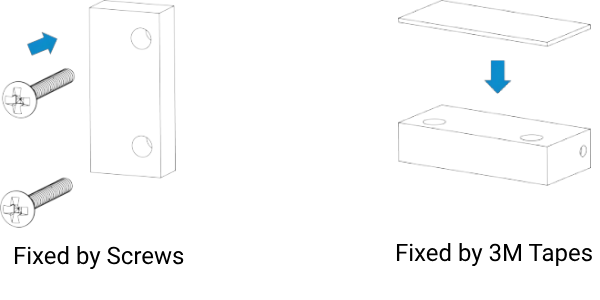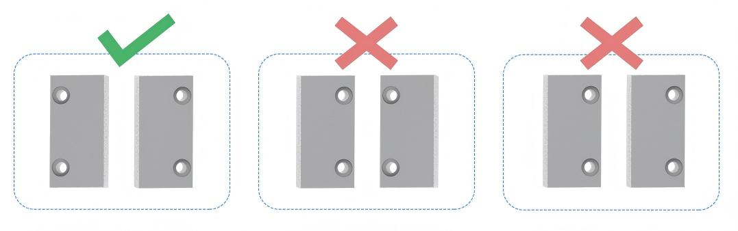 1. Put the two magnet parts to target location and mark the location as needed. To ensure the best detection, both parts should be aligned and the holes of magnets should be faced outside.