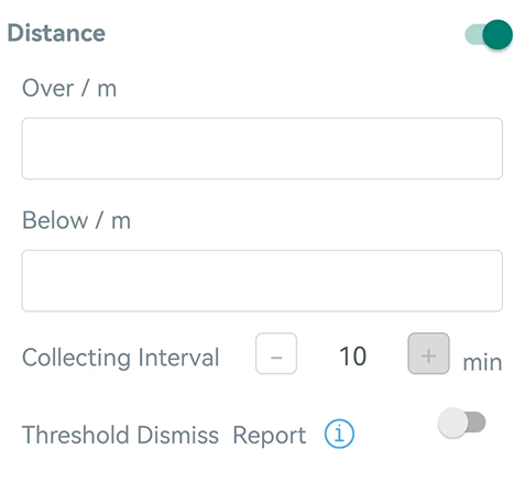 The device will detect whether the distance reaches the threshold according to collecting interval. If threshold is triggered, it uploads the current data once instantly. Only when the threshold alarm is dismissed and re-triggered, the device will send the threshold alarm again.