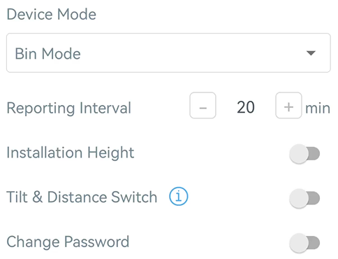 Enable or disable the installation height of the device when in Bin Mode. Note: