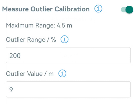 Measure Outlier Calibration: When the device distance value exceeds the outlier range (or range) comparing to the last value, the device will measure the distance once again.