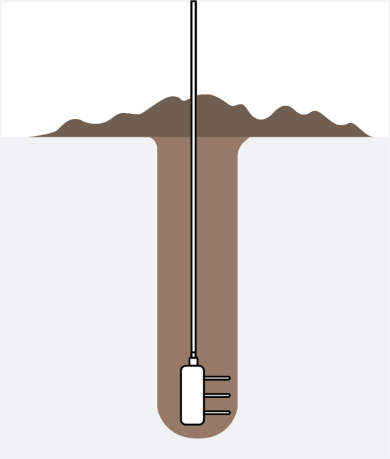Insert the sensor into the undisturbed soil at the bottom of the drilled hole using a hand or any other implement that will guide the sensor into the soil at the bottom of the hole.Note: