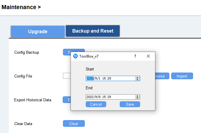 Disable or enable to store periodic report data locally. The stored data can be exported as CSV format file and saved to smartphone via ToolBox. ![]() ![]() Note: