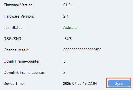 Please ensure that the LoRaWAN® network server supports the device time synchronization feature.