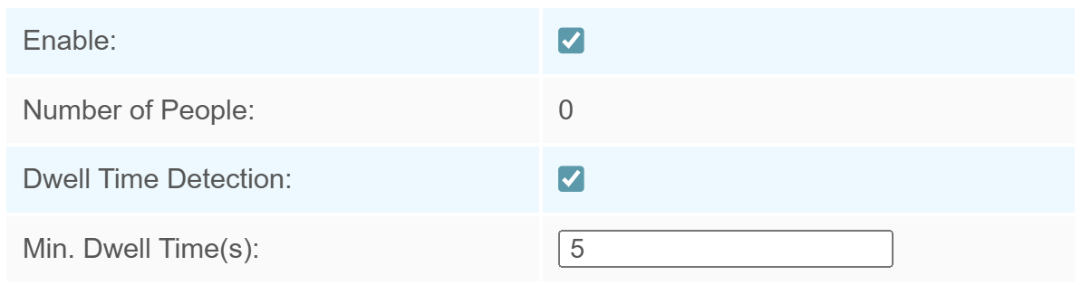 If you want to know dwell time of objects within the area, enable Dwell Time Detection and set Min. Dwell Time. When the object dwells in the area longer than the set Min. Dwell Time, its dwell time will be reported.