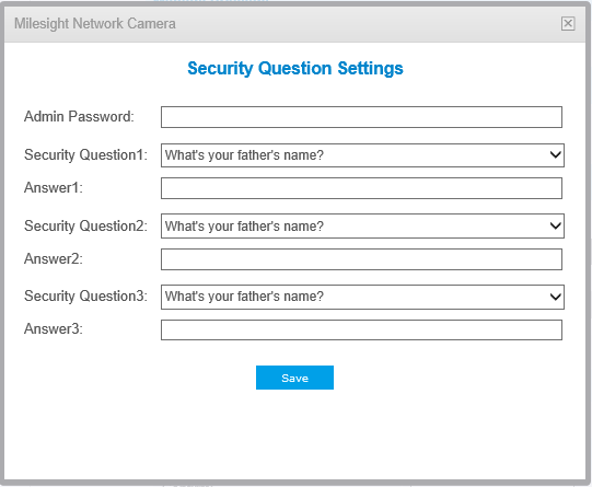 password before adding an account. User Level: It’s fixed as Administrator. User Name: It’s fixed as admin. New Password: Input password for the account. Confirm: Confirm the password. |