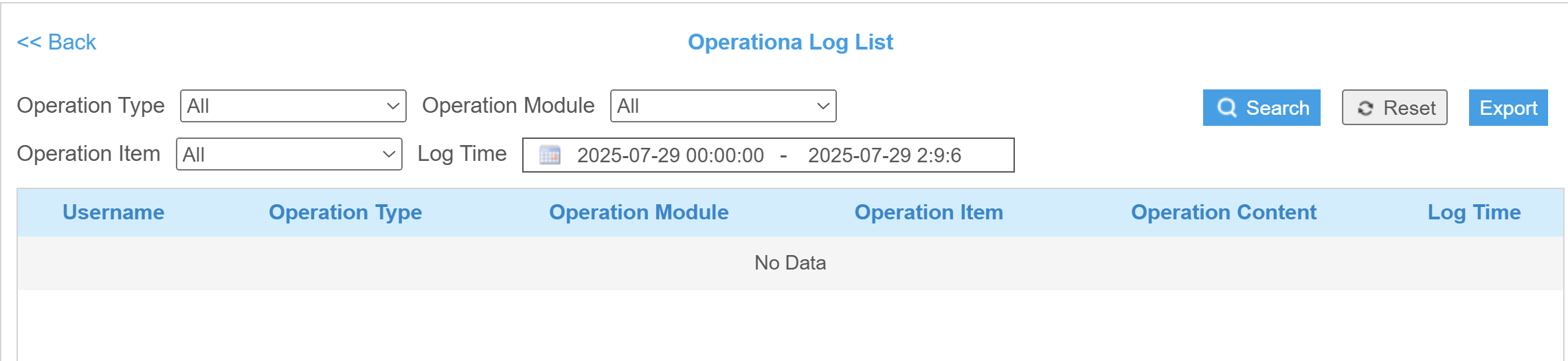 for the logs you wish to view. ![]() You can choose to Search, Reset, or Export this operation log. |
