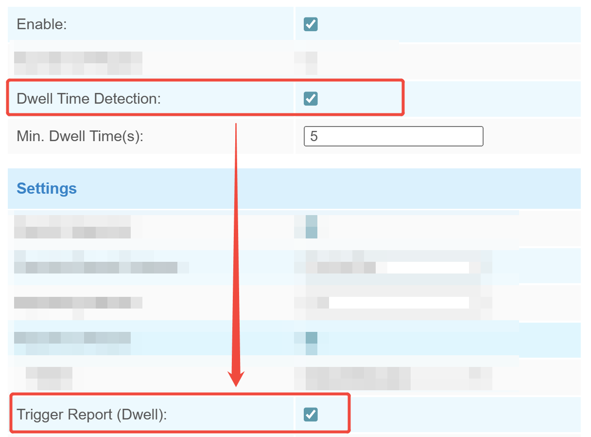 If you want to know dwell time of objects within the area, enable Dwell Time Detection and set Min. Dwell Time. When the object dwells in the area longer than the set Min. Dwell Time, its dwell time will be reported.