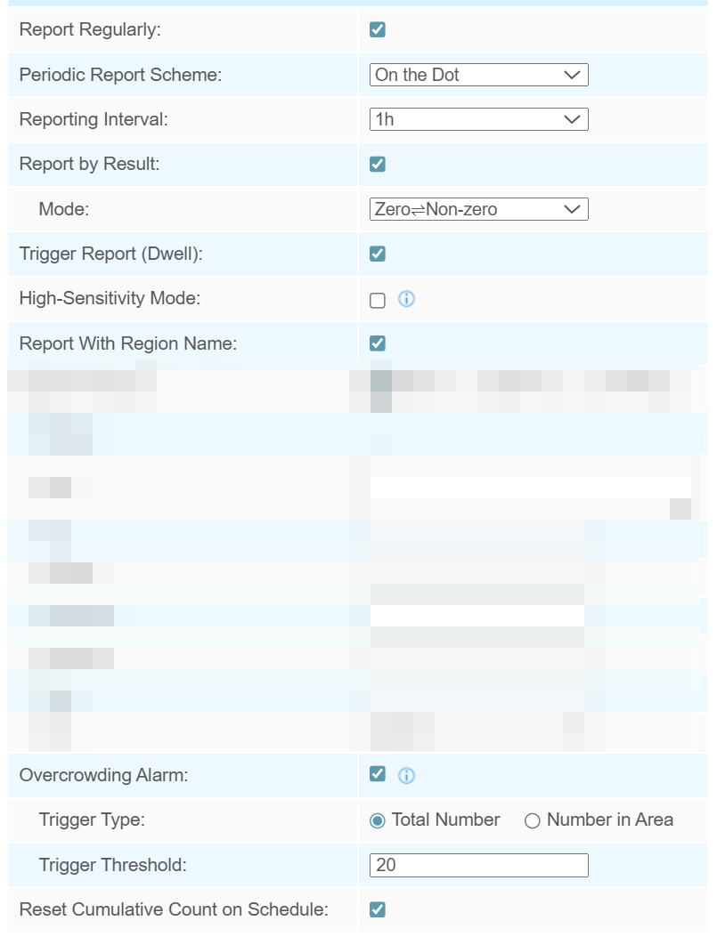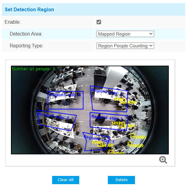 Parameters Description Mapped Region Only people who are in the mapped region will be detected. There are two reporting types: