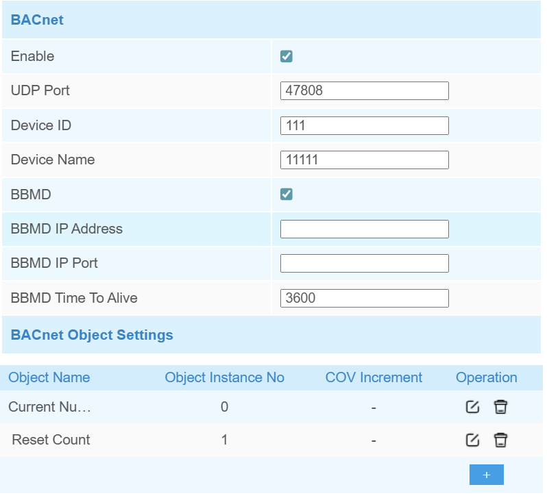 | BBMD | Enable BBMD(BACnet/IP Broadcast