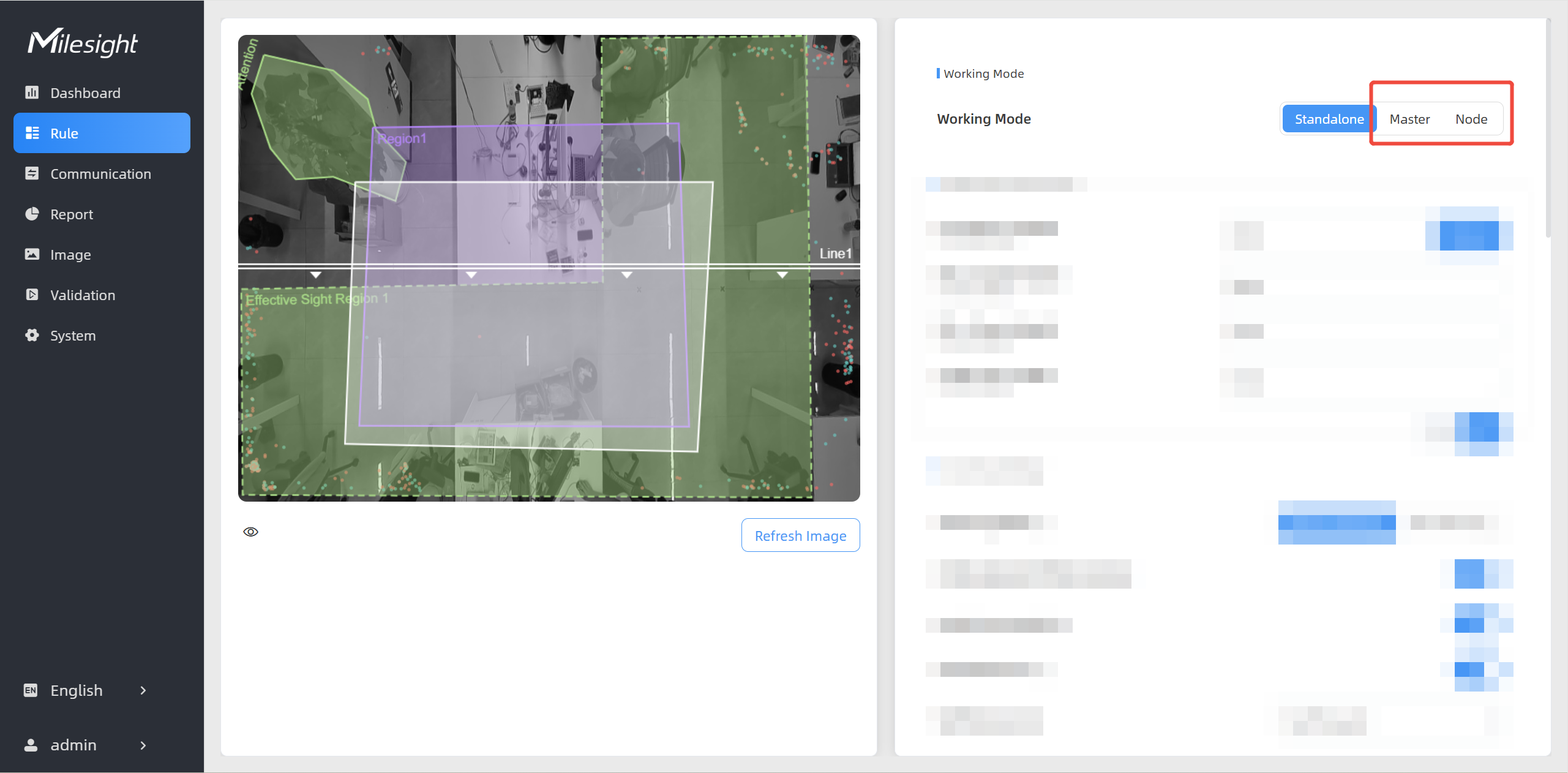 - Master Mode: Receive target tracks and view from the device, responsible for all counts, rule setting, data push and other functions.