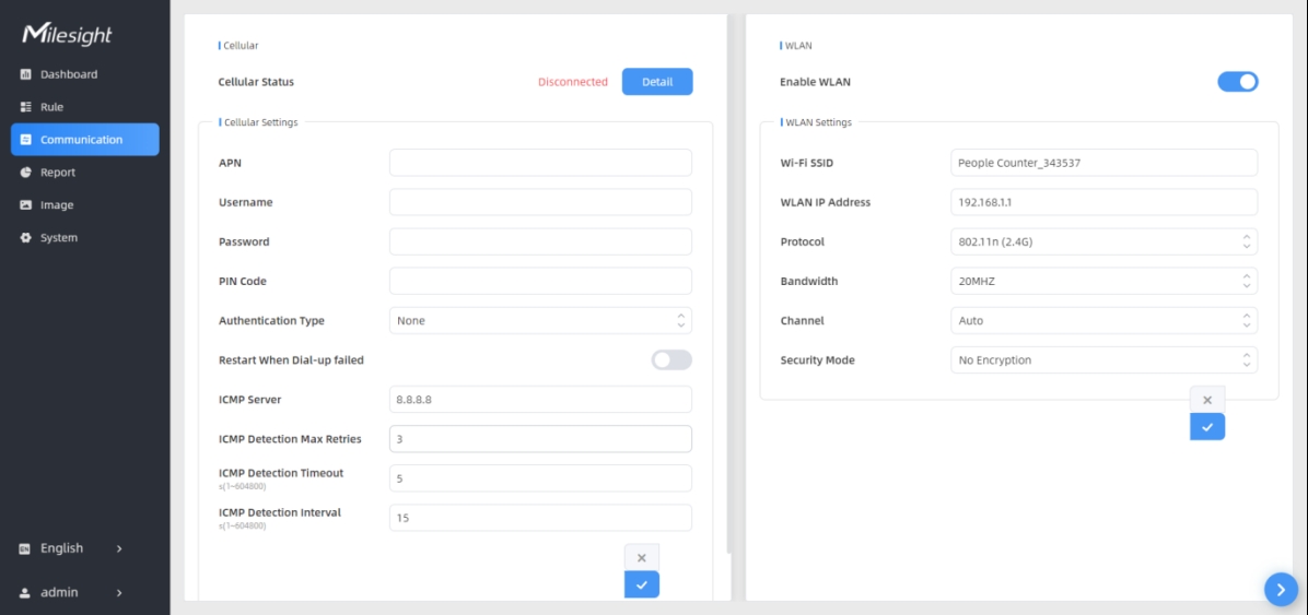 For cellular version, data reporting is depended on the current network. When cellular network and Ethernet are all available, data reporting prioritizes the cellular network.