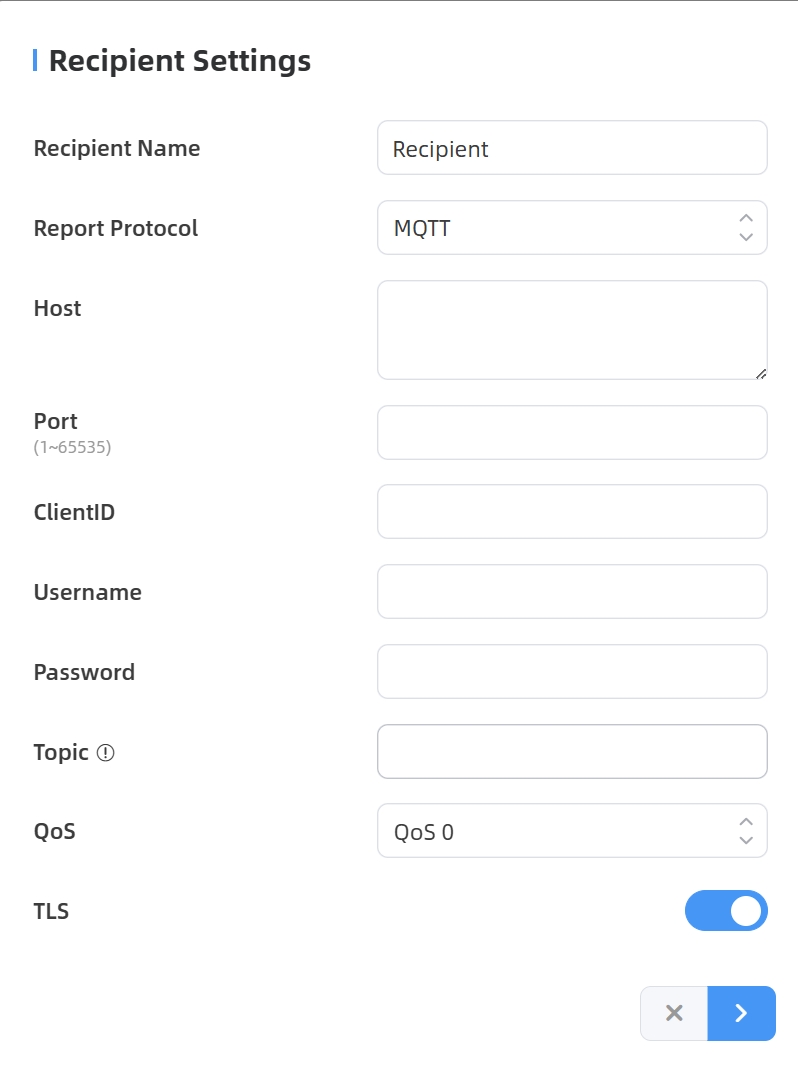 | Data Retransmission | Enable to resend stored data packets from the disconnected period when the device's network connection is restored. Every recipient supports to receive 50,000 pieces of data at most. |