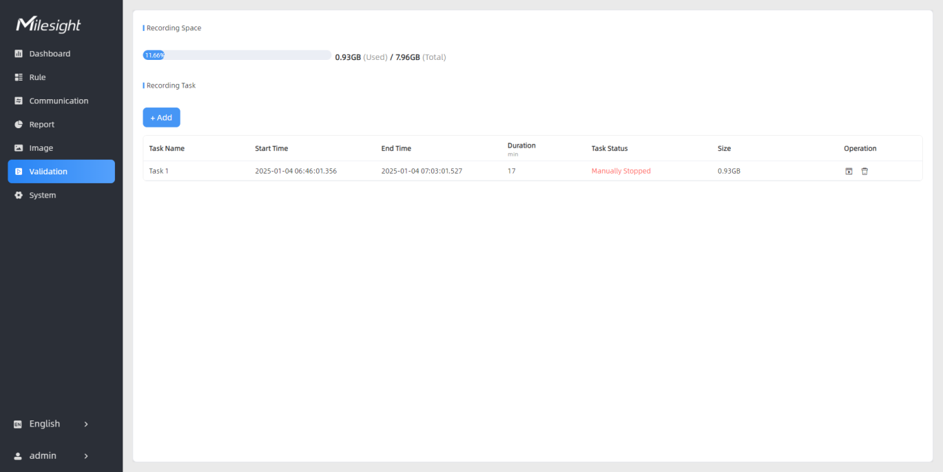 | Operation | Click to check the video details, stop recording or delete the task. |