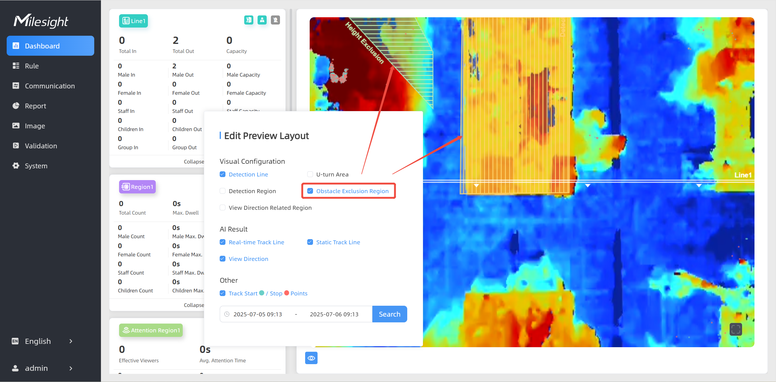 Height Exclusion: Select it when you want to avoid mixing obstacles with targets and creating false detections. You can just box out the parts that are easy to confuse with the targets.