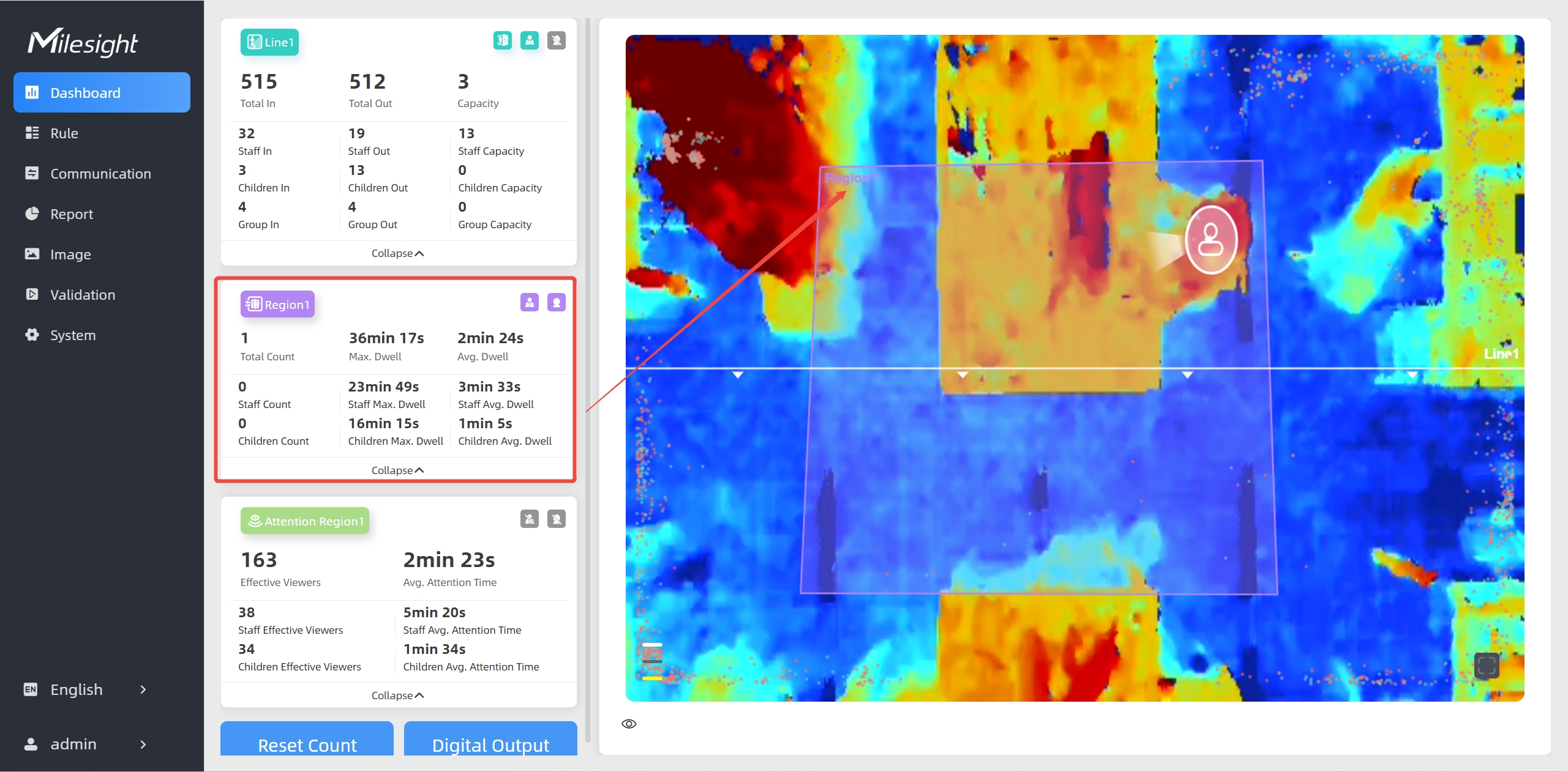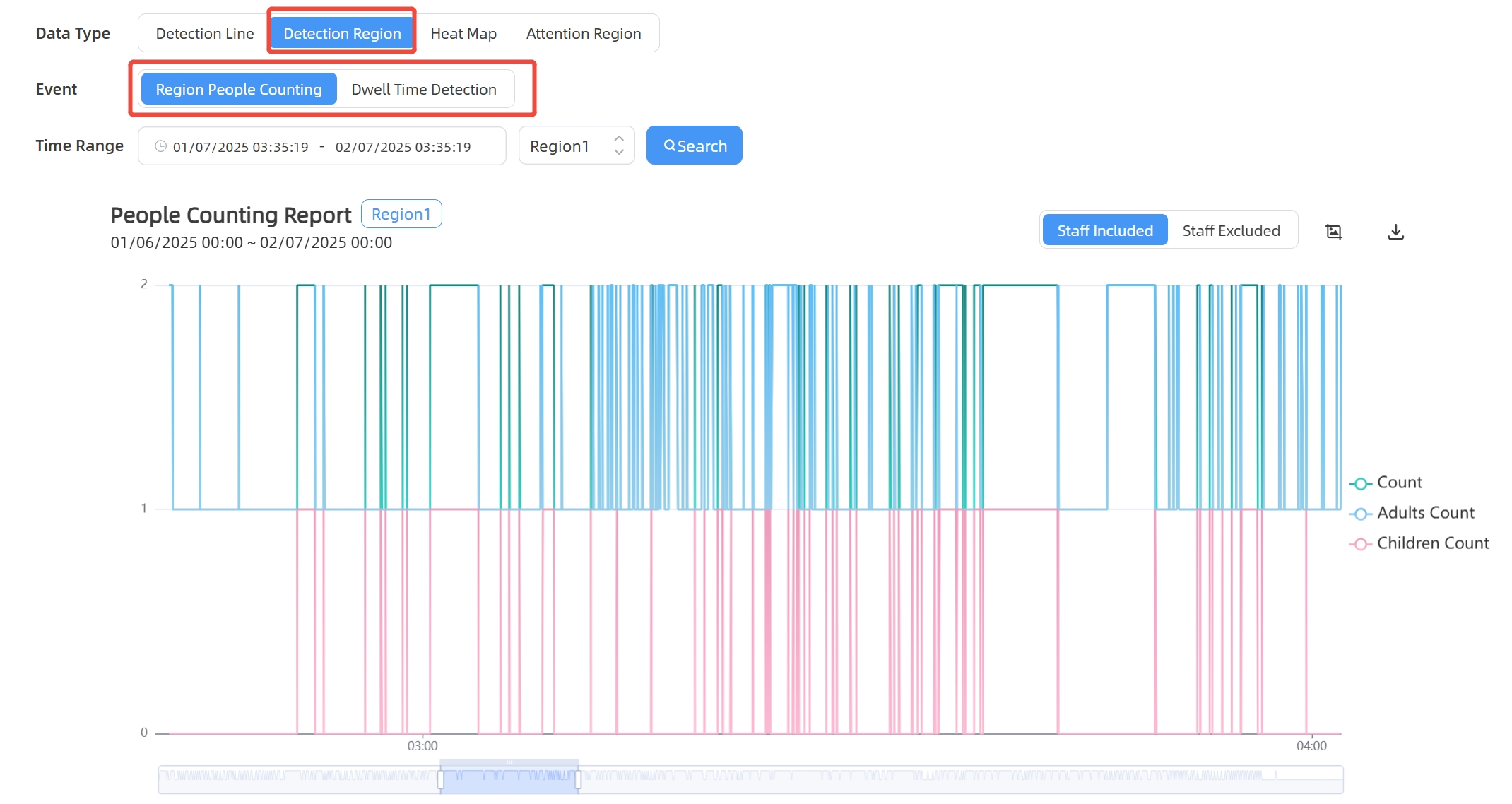 The device supports monitoring the number and the dwell time of people in the region, providing more valuable analysis data.