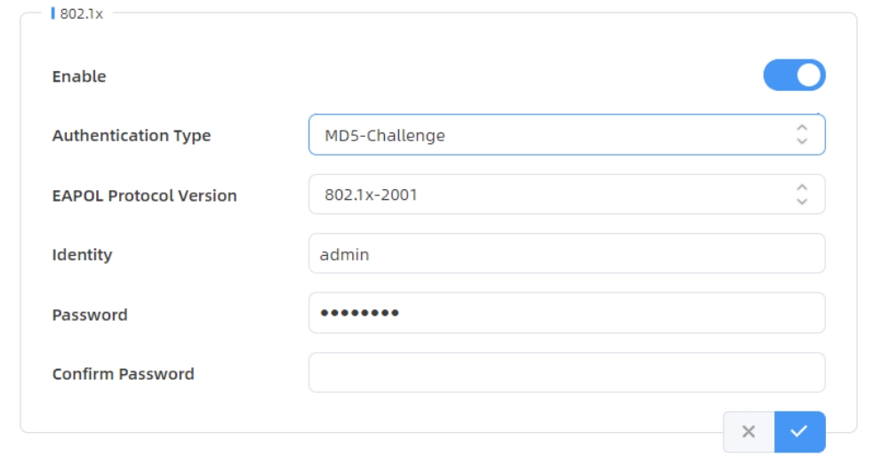| Authentication Type | It’s fixed as MD5-Challenge. |