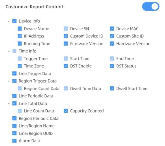 | Trigger Report | Report immediately when there is a change of the line crossing people counting number or region people counting number. |