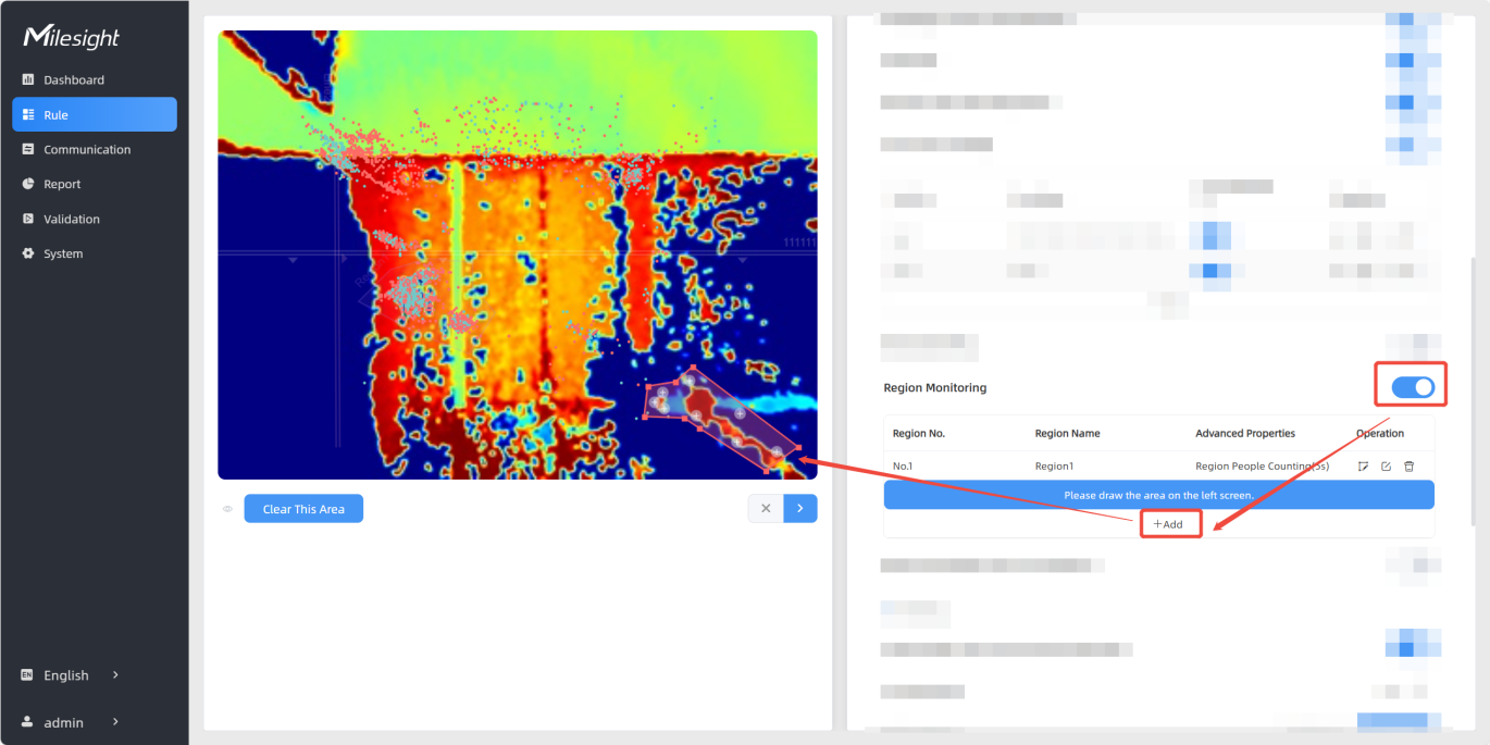 Step 2: Enable Region Monitoring. Click +Add to add the region monitoring on the live view. Up to 4 regions are supported with maximum 10 points each.