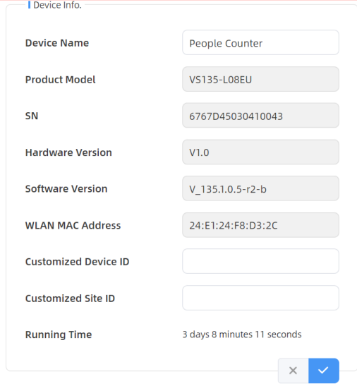 All information about the hardware and software can be checked on this page. Besides, users can modify the device name, customize device ID and site ID for large amounts of devices management.
